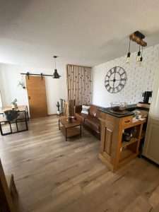 Après : Le studio a été entièrement repensé pour maximiser l’espace et le confort. Aujourd’hui, il est méconnaissable, devenu un espace de vie chic et fonctionnel.